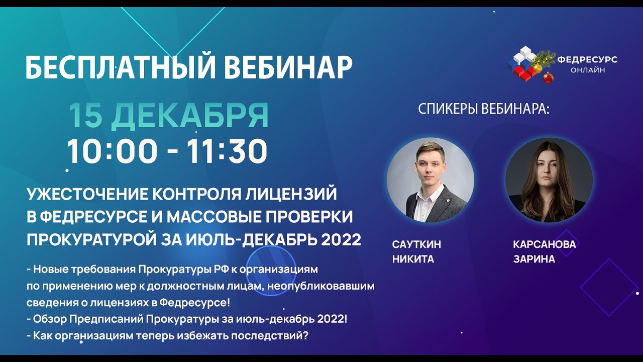 2. Будет проанализирована свежая практика Предписаний Прокуратуры за нарушения обязанности публикации лицензий в Федресурсе (за июль-декабрь 2022 г.) |